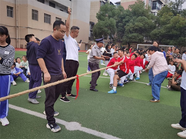 低年级亲子运动会“丰收”接力。每组家庭2人,一大一小,手攥方巾四个角,把蔬果搬来放去,有的行动快速,有的协调一致,有的收放自如,有的意外跑偏,个个手忙脚忙,紧张又热闹;中高年级集体跳长绳比赛简直是加速度的灵活,一甩一跳,每班8人三分钟竟有跳出将近400个的频率,在场的裁判啧啧称赞,在场的观众掌声阵阵;高年级的拔河比赛,那是拧成一股绳的团结一心,那是撸起袖子加油干的地震山摇,绳子中间的红巾不时在左右摇摆,呐喊声一浪高过一浪。最终一声“赢了”的高呼声划过空中,他们才松开已被绳子勒红的双掌。