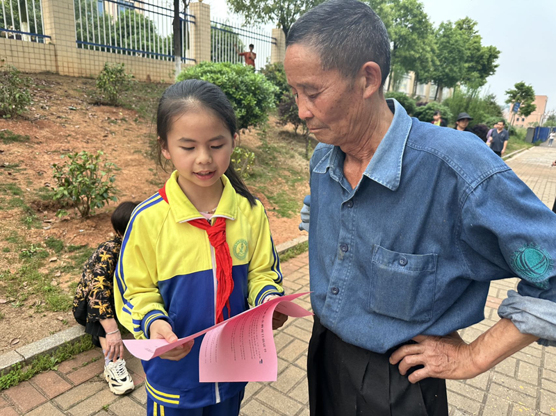 4月15日,衡阳市石鼓区金源小学党员老师带领少先队员前往新安社区向家长、群众、附近商铺老板进行安全知识普及志愿活动。队员们沿着街道,校园附近主干道发放“4·15”全民国家安全教育日倡议书。倡导大家增强日常安全意识,当好安全卫士,共把家庭安全关,为国家安全环境贡献自己小小的一份力。(通讯员 彭嘉琪)