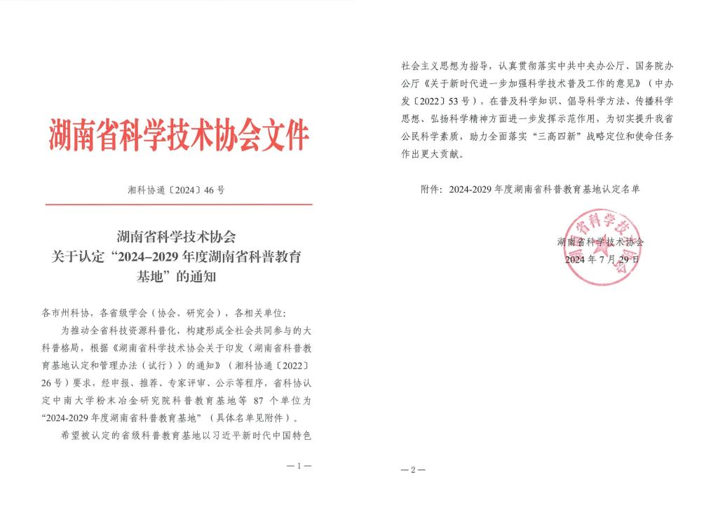 近日,湖南省科学技术协会认定了87家单位为“2024-2029年度湖南省科普教育基地”(湘科协通[2024]46号),长沙航空职业技术学院航空馆成功入选。
