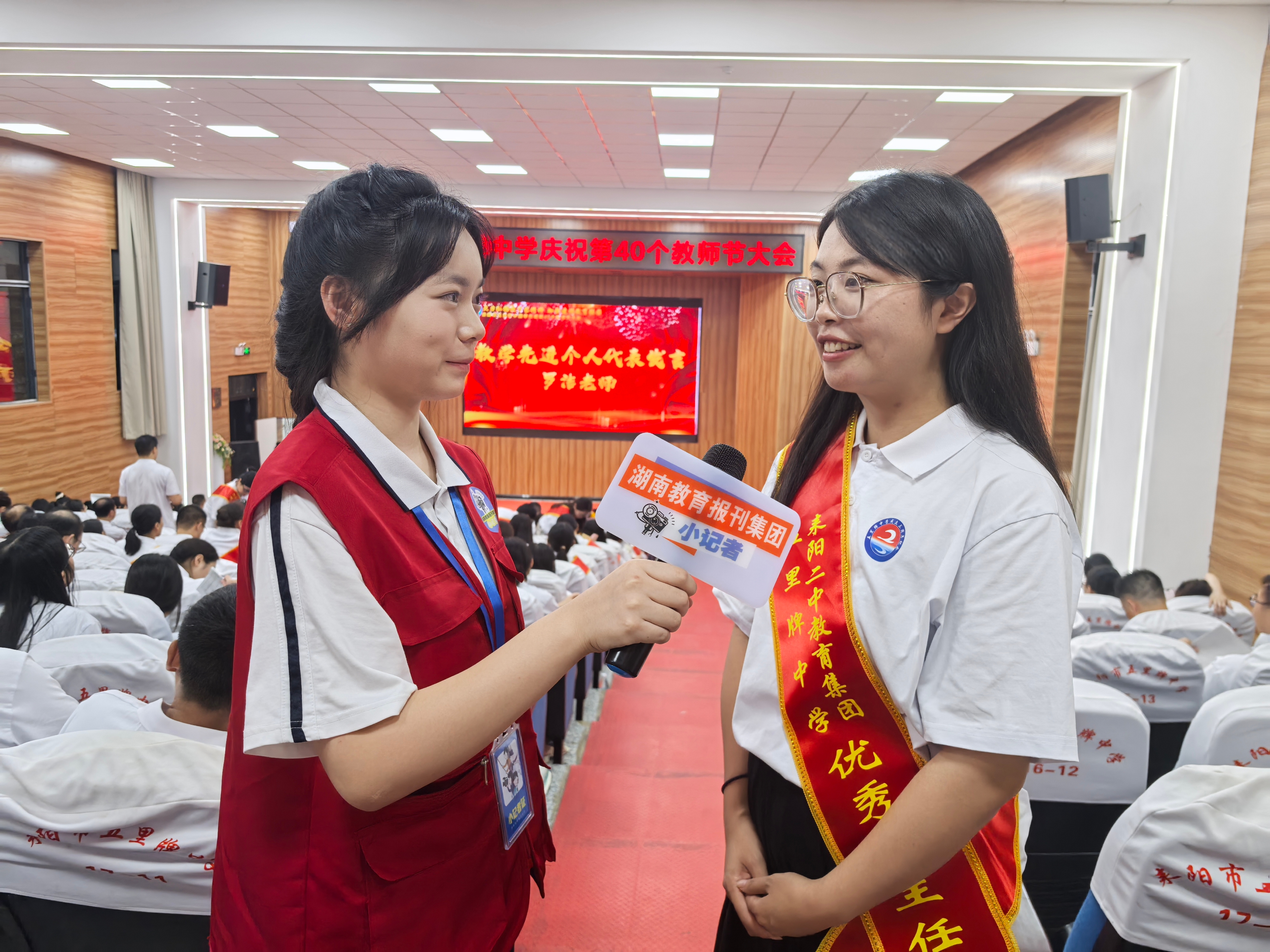 湖南教育报刊集团耒阳小记者站(小记者 廖奥)金秋沃野,硕果盈庭。9月10日,耒阳市五里牌中学举行教师节大会。全体教职工齐聚报告厅,共同欢庆第40个教师节,共议学校发展之路,共绘美好未来蓝图。