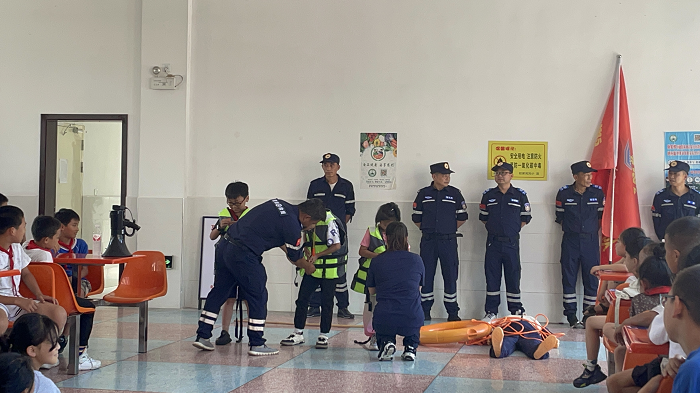活动中,溇澧救援队的工作人员结合生活实际,通过真实案例,分别从溺水易发、高发时段、野外水域危险、溺水后如何呼救、溺水后如何正确施救、如何预防溺水等方面,深入浅出地向师生普及防溺水知识;宣讲现场,学生们积极认真,了解到了关于防溺水急救方面的知识;工作人员还邀请三位同学一起现场向师生演示如何正确使用救生杆,指出同学们穿戴救生设备的误区。