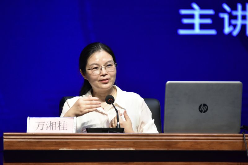 本次活动的重磅环节为湖南第一师范学院学前教育系主任万湘桂老师讲座,主题为《婴幼儿早期阅读的指导策略》。讲座内容围绕早期阅读的好处、什么是早期阅读以及幼儿园开展早期阅读的具体策略等几个方面进行。她表达了“阅读的兴趣,从0岁开始”的观点,依照《3~6岁儿童学习与发展指南》中“听、说、读、写”要求,结合世界优秀图画书实例,指出早期阅读具有激发阅读兴趣、锻炼专注力、陶冶美感、激发表达与创作等好处。成功的阅读教育,一是要有好的阅读读本,二是要有好的阅读方法。在策略指导环节,万教授为幼儿园提供了早期阅读指导的方法建议:创设聚焦的阅读环境,与讲述活动紧密结合,注重阅读活动的整合性等。同时,万教授还指出了幼儿园早期阅读活动的误区,如注意区分讲故事活动和早期阅读,早期阅读不等于早期识字等。万教授的讲座内容环环相扣、生动形象,获得与会人员一致好评。
