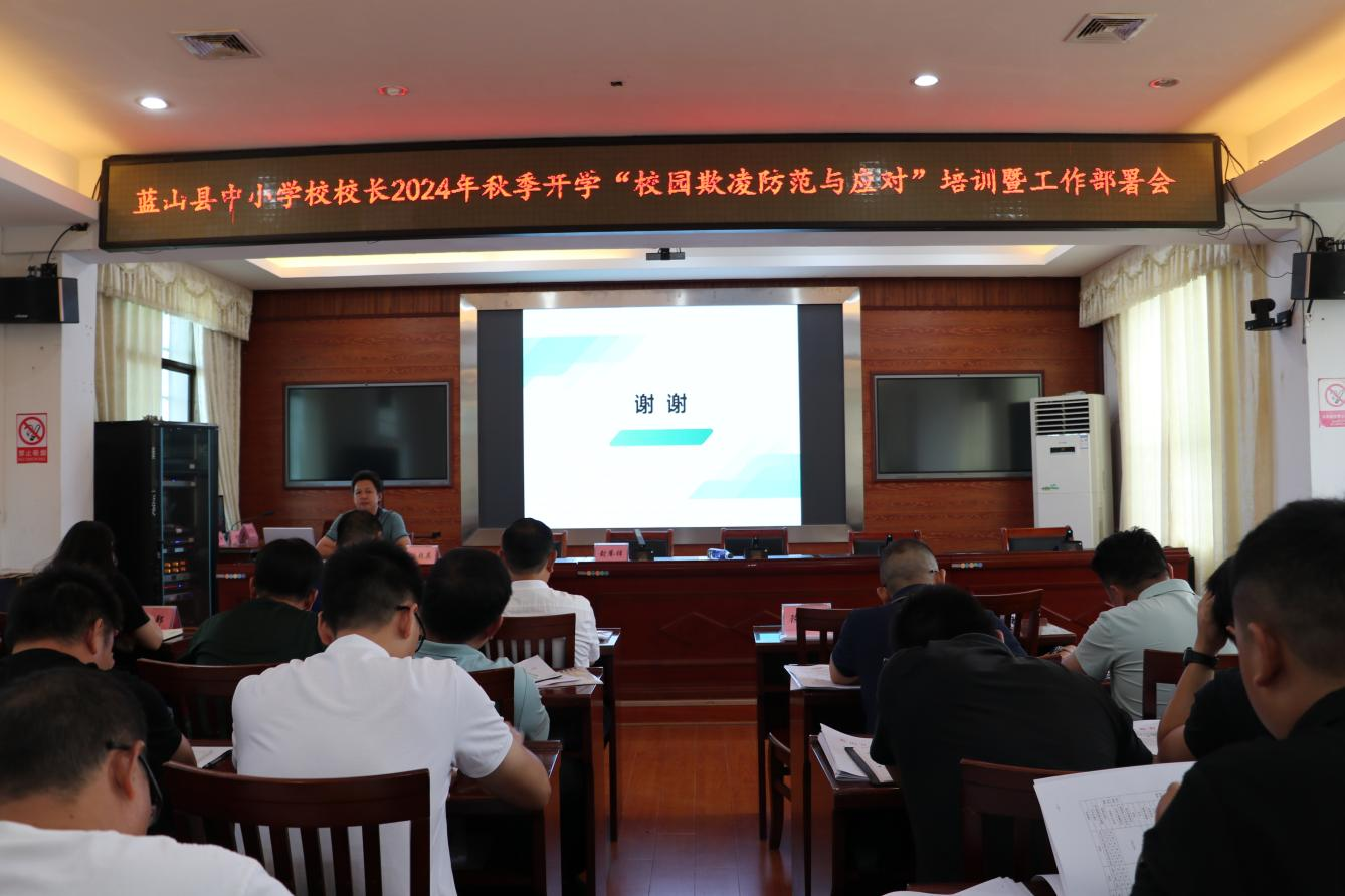为有效预防和应对校园欺凌事件,构建和谐安全的校园环境,近日,蓝山县教育局组织开展了中小学校校长校园欺凌防范与应对培训,为全县52名校园长带来了一堂生动的“平安教育课”,点亮“安全之灯”。
