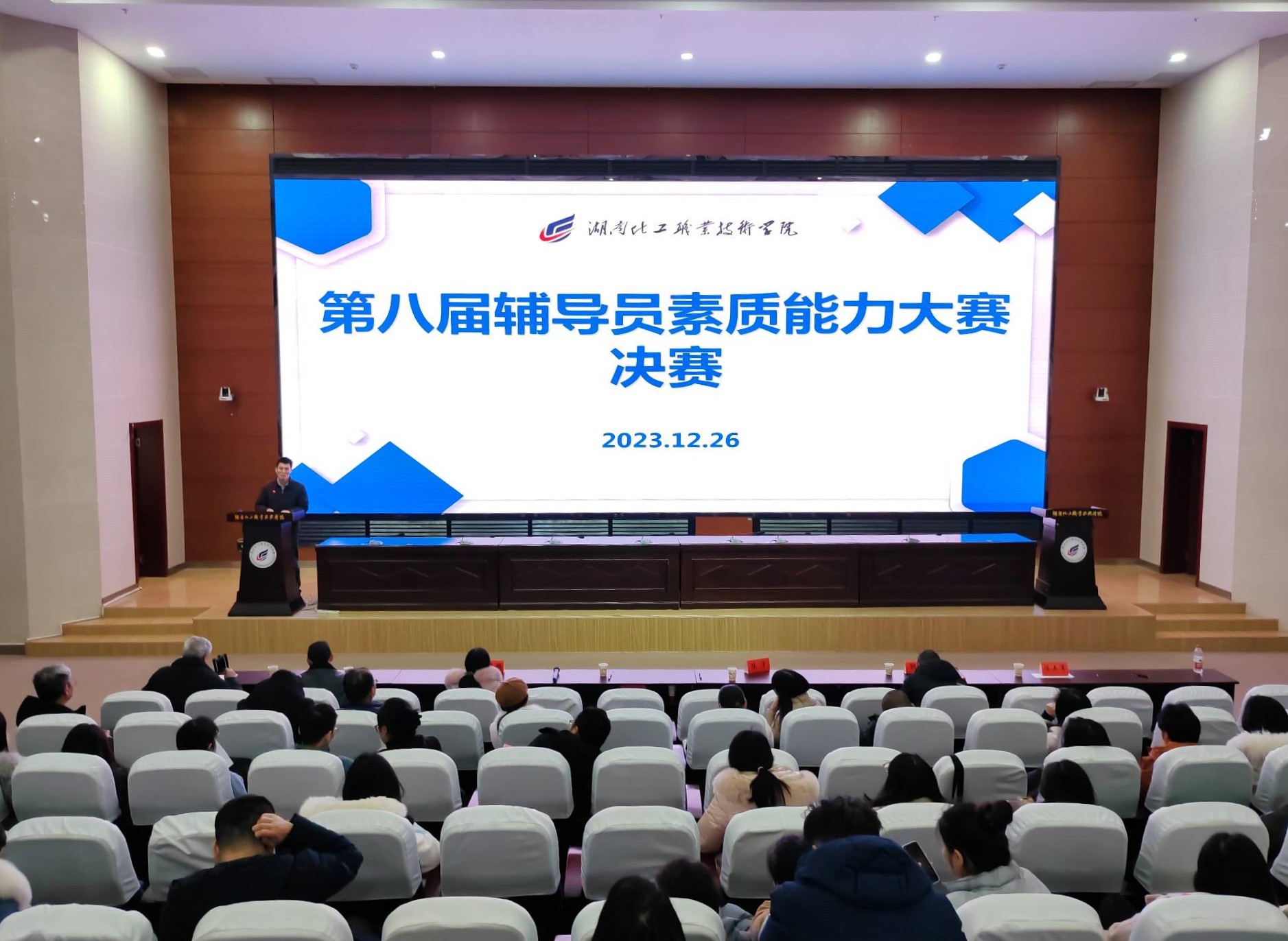 湖南教育新闻网讯 (通讯员 熊光)为进一步学习贯彻习近平新时代中国特色社会主义思想,加强辅导员队伍建设,不断提升辅导员理论水平、职业能力和专业素养,湖南化工职业技术学院于12月26日至27日在图书馆报告厅举行2023年辅导员素质能力大赛决赛。决赛环节特邀学校纪检监察处处长汪发亮、学生工作部部长陈宇,基础课部部长欧彦麟、招生就业处处长郭浪、校团委书记陈土军担任现场评委。