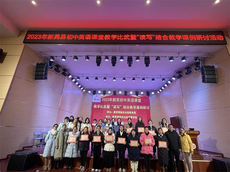 湖南教育新闻网讯(通讯员 钱行 蒲璐婷)为全面推进基于学科核心素养的中学英语学科教学改革与创新,在教育教学中践行新课标理念和要求,进一步提高新晃县初中英语教育教学质量,12月14日至15日,2023年新晃县初中英语课堂教学比武暨初中英语学科工作室读写结合教学课例研讨活动在县芙蓉学校举行,工作室全体成员及全县初中英语教师100余人参加活动。