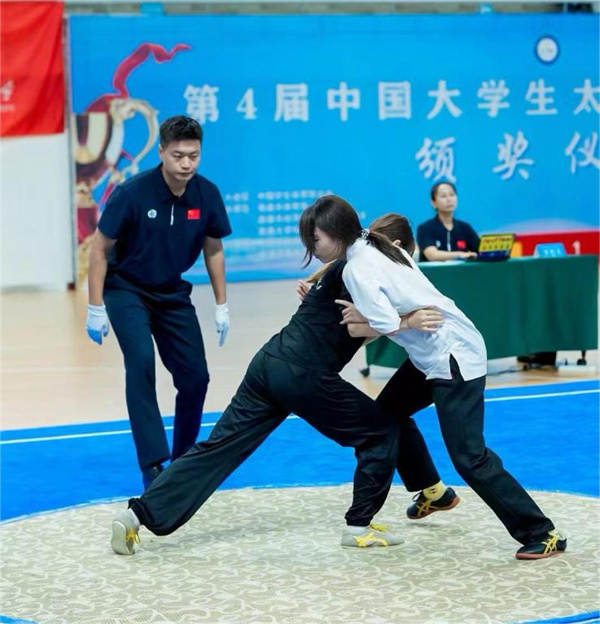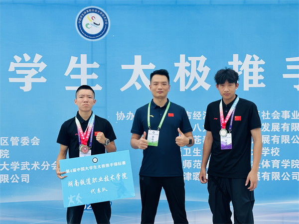 湖南教育新闻网讯(通讯员 潘金星)第四届中国大学生太极推手锦标赛日前在江苏省南通市开发区举行。本次赛事共有来自北京体育大学、上海体育大学、中国人民公安大学等全国66所高校近500位选手参加。大学生运动员们围绕太极推手实战、太极类非遗项目展示、双人推手、团体竞技等项目展开激烈角逐。湖南铁道职业技术学院代表队在主教练史文锋、王栋老师的带领下,经过四天奋勇拼搏,共获得3银3铜的好成绩。本次比赛全面展现了打练结合、舞彀合一、止戈为武的武术本质特征,充分体现了新时代中国武术的发展方向。参赛选手们更是凭借精湛技艺演绎了博大精深的中华武术文化精髓。
