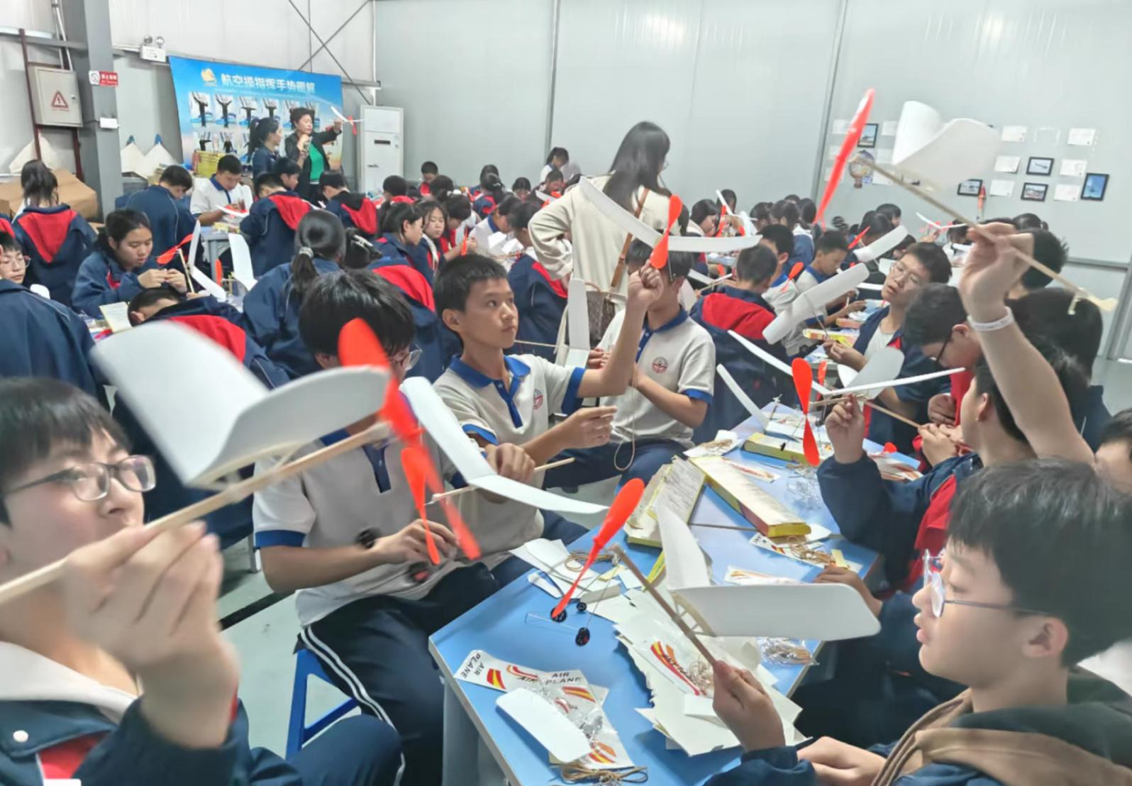 接着,同学们来到芦淞航空小镇。在航空知识大讲堂上,讲解员为同学们介绍了航空领域的基本知识、航空的起源和发展,以及航空业的基本概念和专业术语。走进翔为大机库,同学们进入机舱零距离观察,了解了实体飞机驾驶舱、空舱及直升机在各个领域的应用。同学们还动手实践,组装了航空模型。活动现场,同学们兴致高涨,热情洋溢。