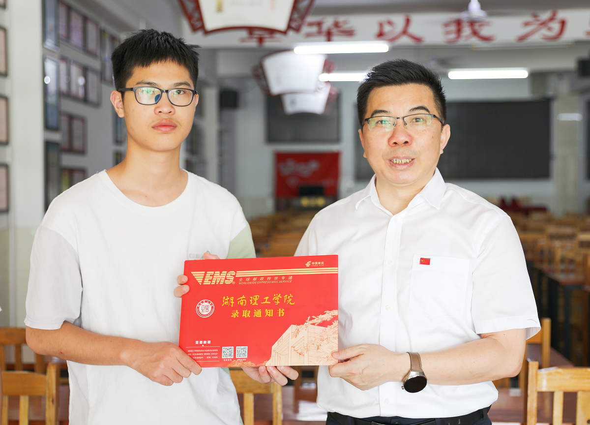 湖南教育新闻网讯(通讯员 吴昊楠)“郑可同学,恭喜你成为湖南理工学院的一份子!”7月29日上午,湖南理工学院党委委员、副校长徐振祥一行驱车专程来到岳阳华容县,将学校2024年第一封录取通知书送到团洲转移群众章华学校集中安置点并开展“爱心家访”活动,看望和慰问了2024级化学化工学院团洲籍新生郑可和家人。