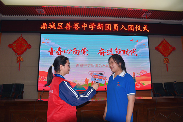湖南教育报刊集团鼎城区小记者站(小记者 曾湘涵)“我们是五月的花海,用青春拥抱时代,我们的初升的太阳,用生命点燃未来……”5月30日,善卷中学“青春心向党 奋进新征程”2024年新团员入团仪式在学术报告厅如期举行,九年级92名同学激情唱响《光荣啊 中国共青团》,用崭新的身份开启下一站青春之旅。