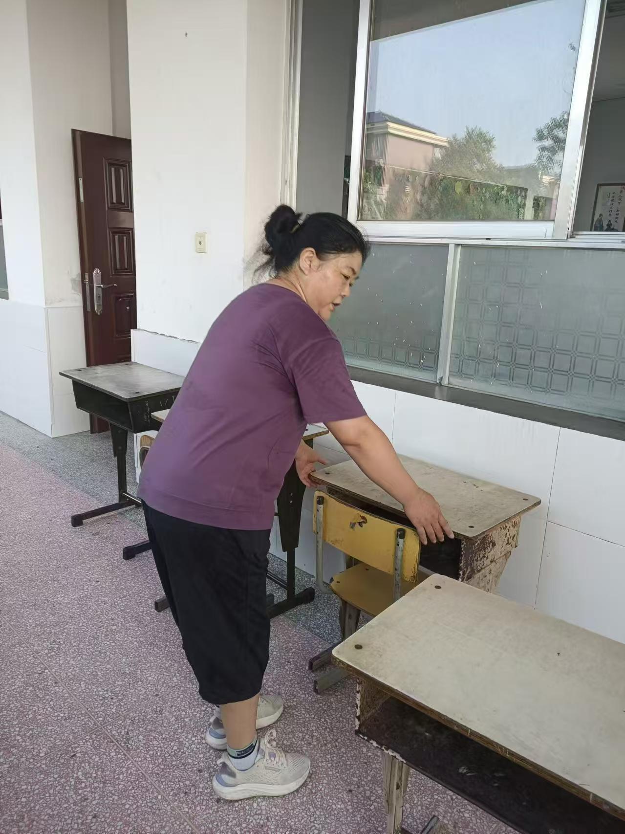 8月31日6点30分,常德市鼎城区蔡家岗中学的“夫妻班主任”——蔡明华和向立平两位老师,准时赶到了各自的教室——二年级一班和一年级二班。打开教室门,暑热未尽,扑面而来。不等歇口气,两人立刻开始动手搞卫生,拖地,抹灰,布置教室。一个小时后,焕然一新的教室,黑板上精心布置的迎新画迎来了第一批报名的小朋友。蔡老师和向老师的新学期正式开始了。