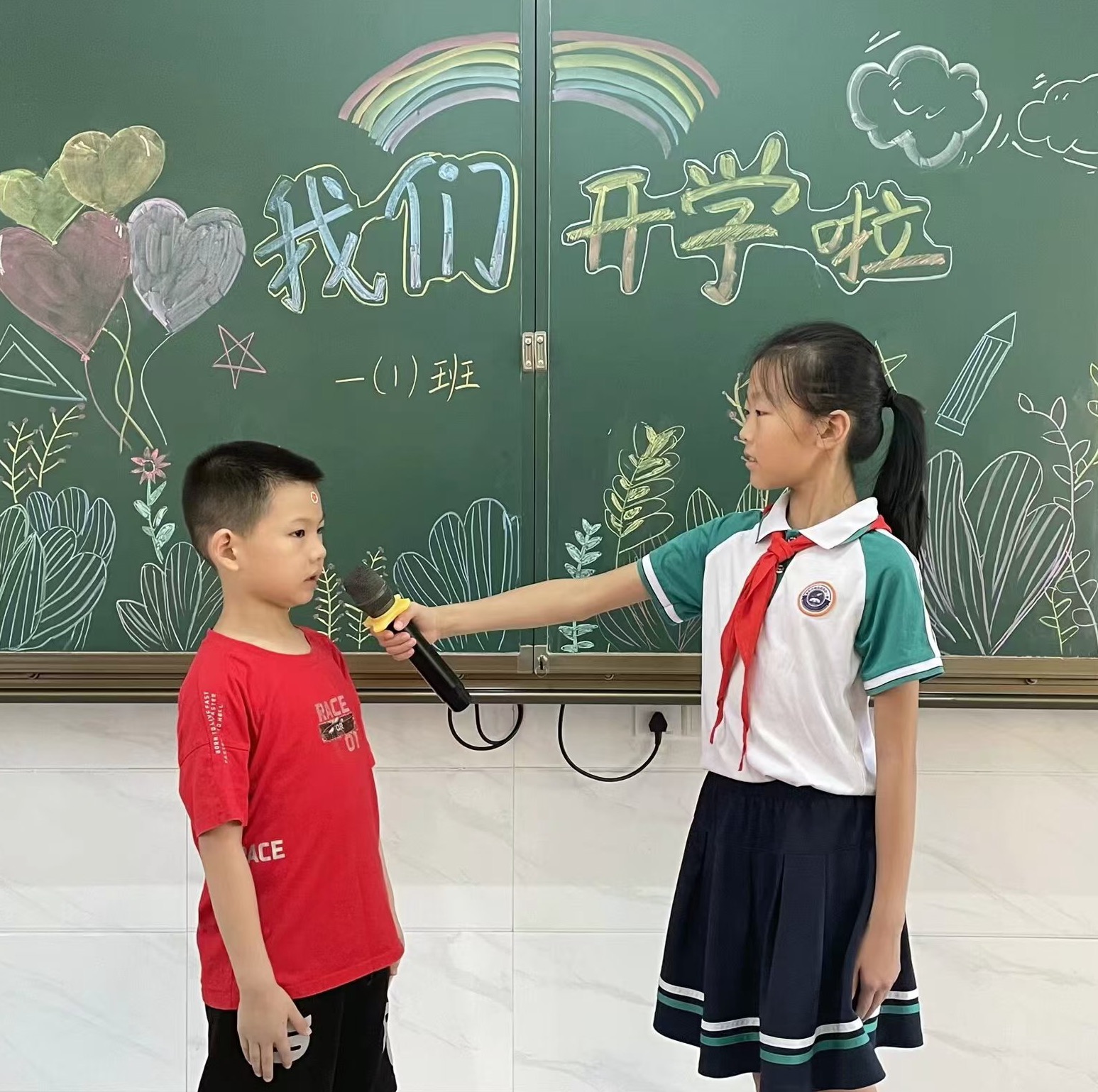 “妈妈,我们学校布置得可漂亮了,到处都是气球呢!”“爸爸,我们班的黑板报画得可好了!”整个校园都洋溢着温馨而充满活力的氛围。小朋友们带着好奇与兴奋走进了属于他们的班级,进行了第一次的自我介绍,用稚嫩的声音分享着自己的名字,并跟随老师的步伐,初步探索了美丽的校园。孩子们对即将开始的学习生活充满了无限憧憬。
