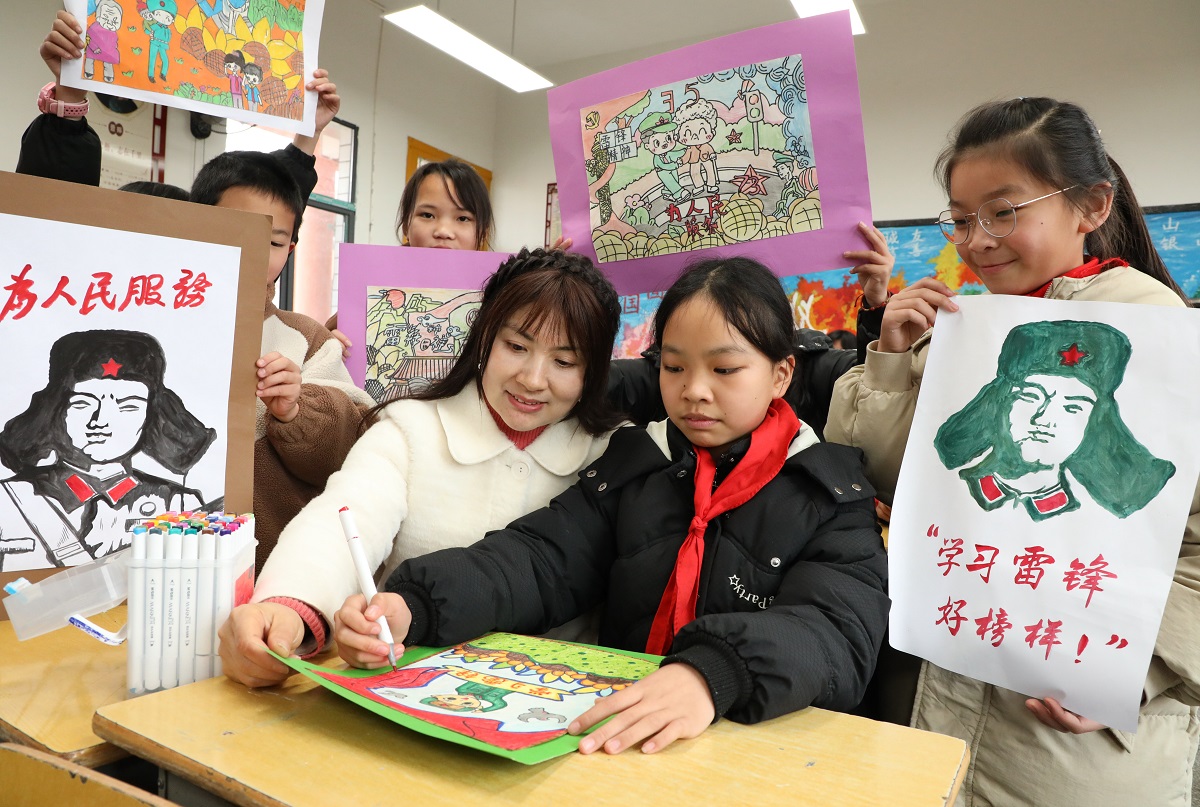 3月4日,保靖县清水坪学校的学生在描绘雷锋画像。连日来,该校开展“手绘雷锋故事,弘扬奉献精神”主题教育活动,学生们在教师的指导下,围绕雷锋故事开展绘画创作,画出雷锋生活、工作中的各类图像,以此学习和传承雷锋精神。(通讯员 俞采华 陈亚平)