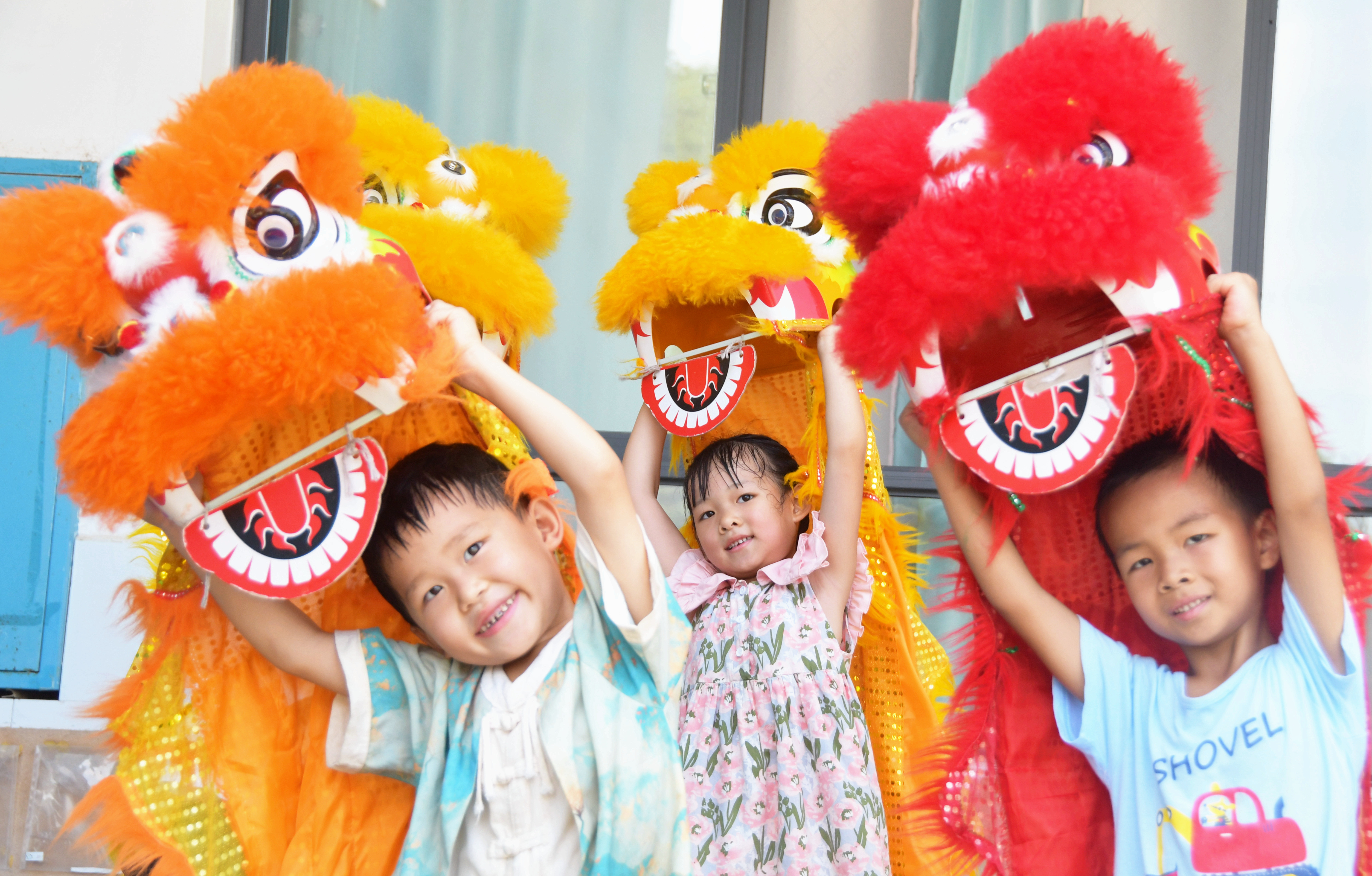 9月3日,湖南省永州市江永县工业集中区幼儿园孩子们在表演舞狮。