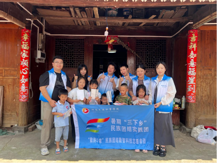 湖南教育新闻网讯 (通讯员 殷美思 徐彤)在湖南省怀化市会同县的青山绿水间,一场关于民族团结、文化传承与科技融合的暑期“三下乡”实践活动悄然上演。近日,湖南民族职业学院萌豆儿“数韵华章”民族团结数智科技志愿者团队,怀揣着对民族文化的无限热爱与对科技创新的执着追求,深入这片苗族风情浓郁的土地,开启了一场别开生面的数智科技之旅,共同绘就了一幅民族团结与进步的新画卷。